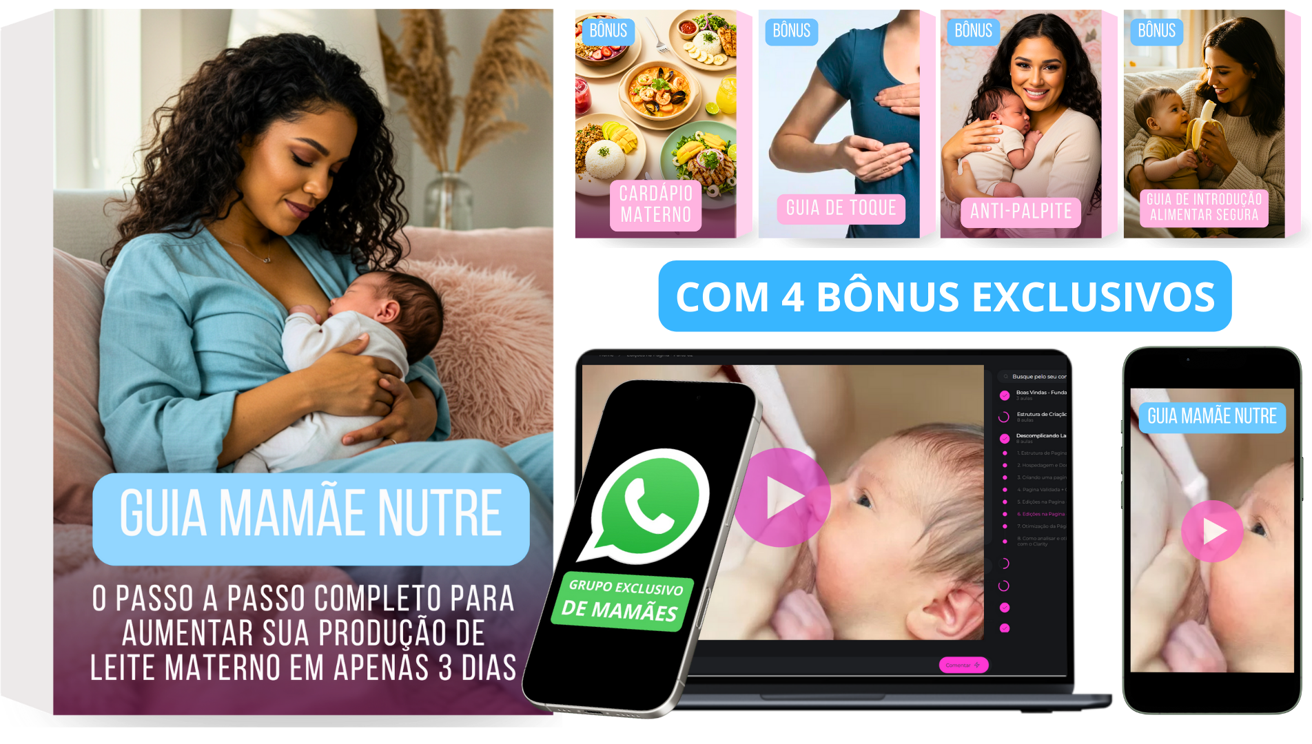 Foi assim que nasceu o “Mamãe Nutre”: um guia prático, direto e acolhedor para ajudar mulheres a entenderem seus corpos, protegerem sua amamentação e aumentarem naturalmente a produção de leite materno, mesmo que estejam no limite da exaustão.